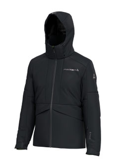 Hochfunktionelle, leicht wattierte Skijacke mit fester , verstellbarer Funktionskapuze und Lavalanwollisolierung.